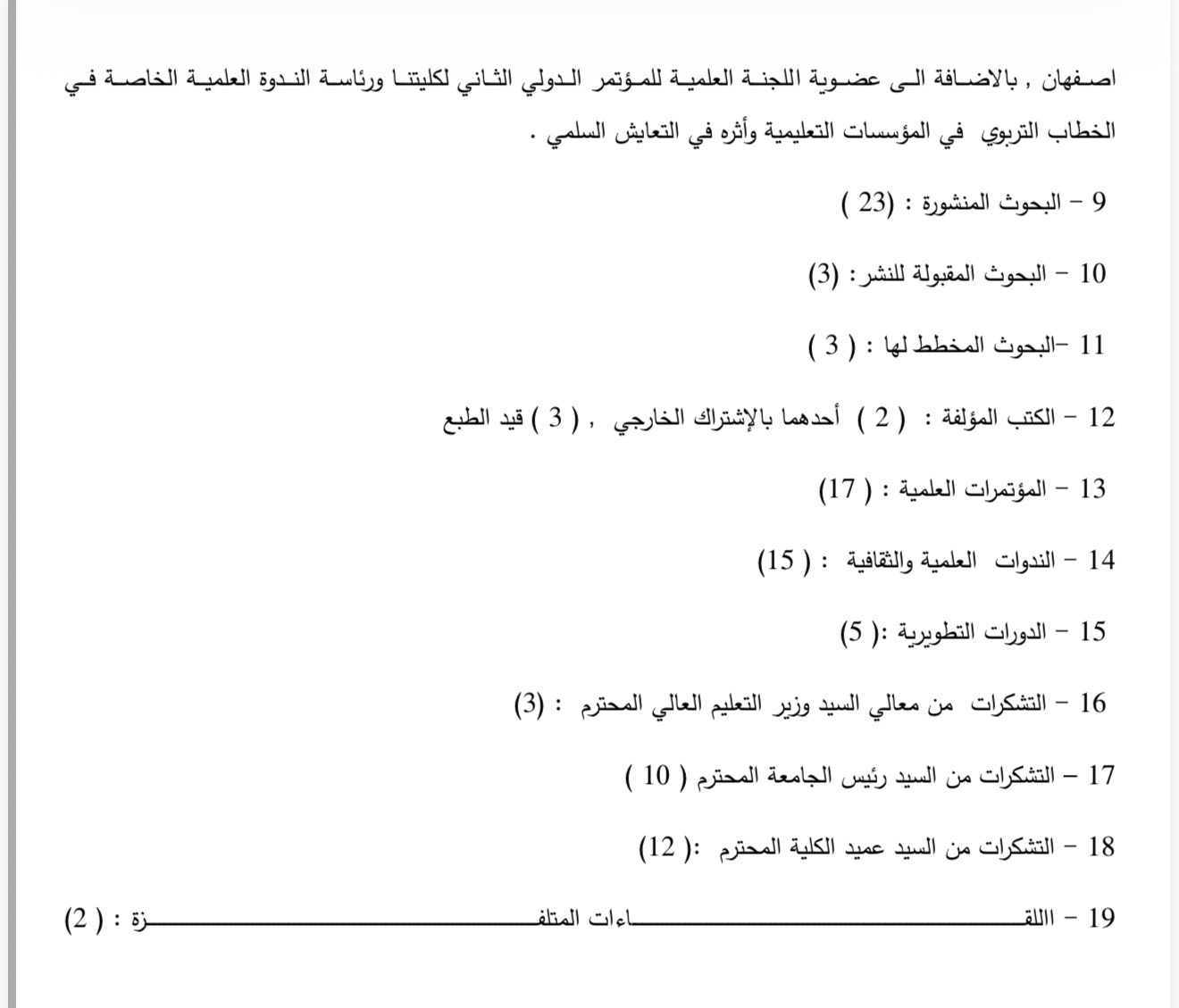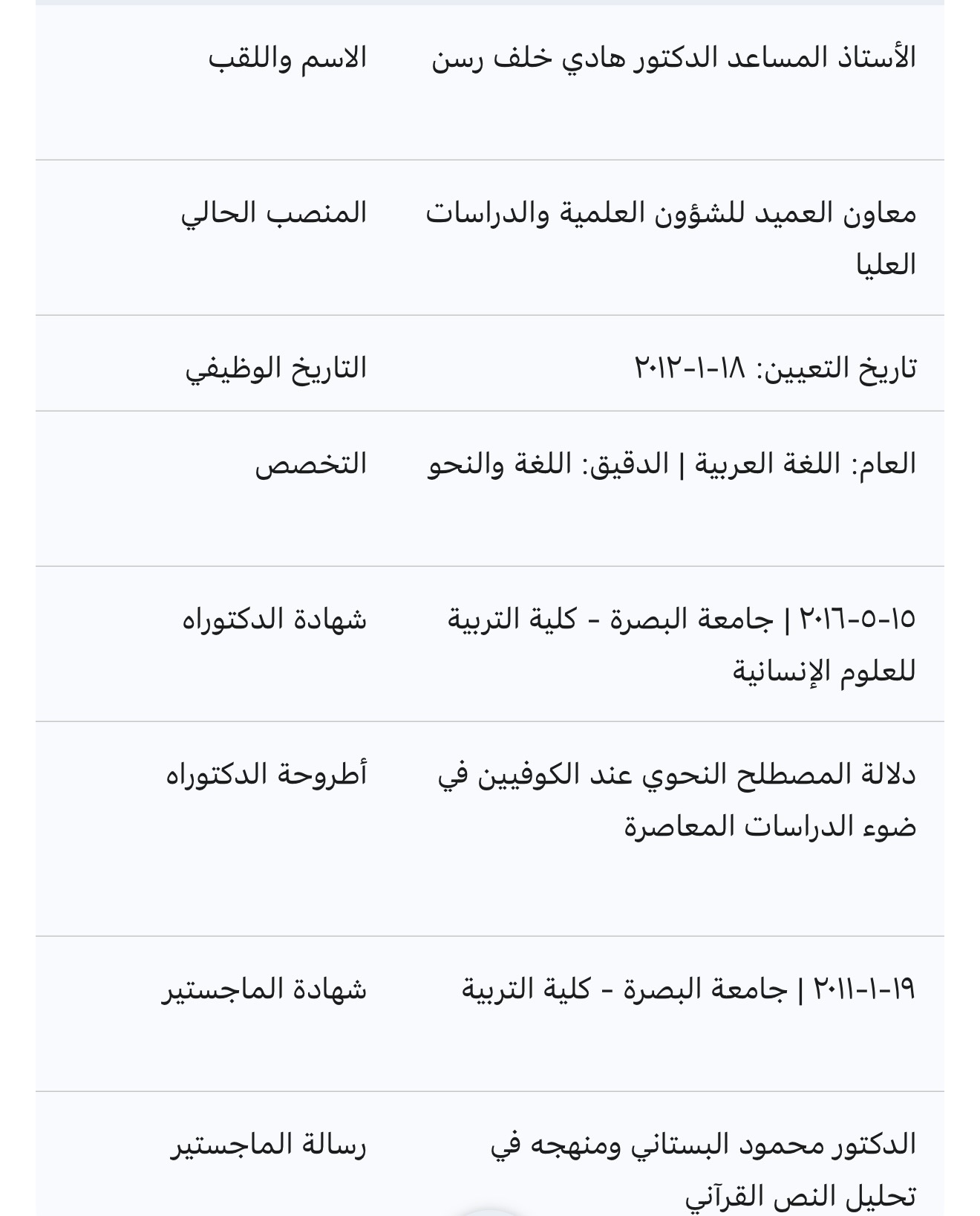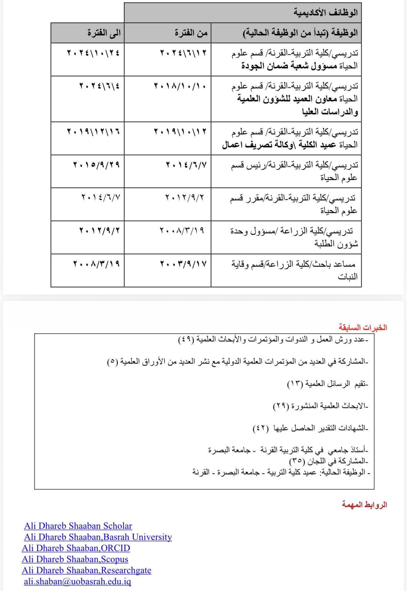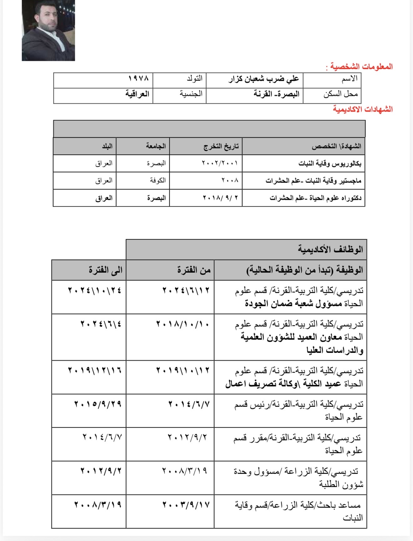 السيرة الذاتية لأعضاء مجلس كلية التربية القرنة – جامعة البصرة