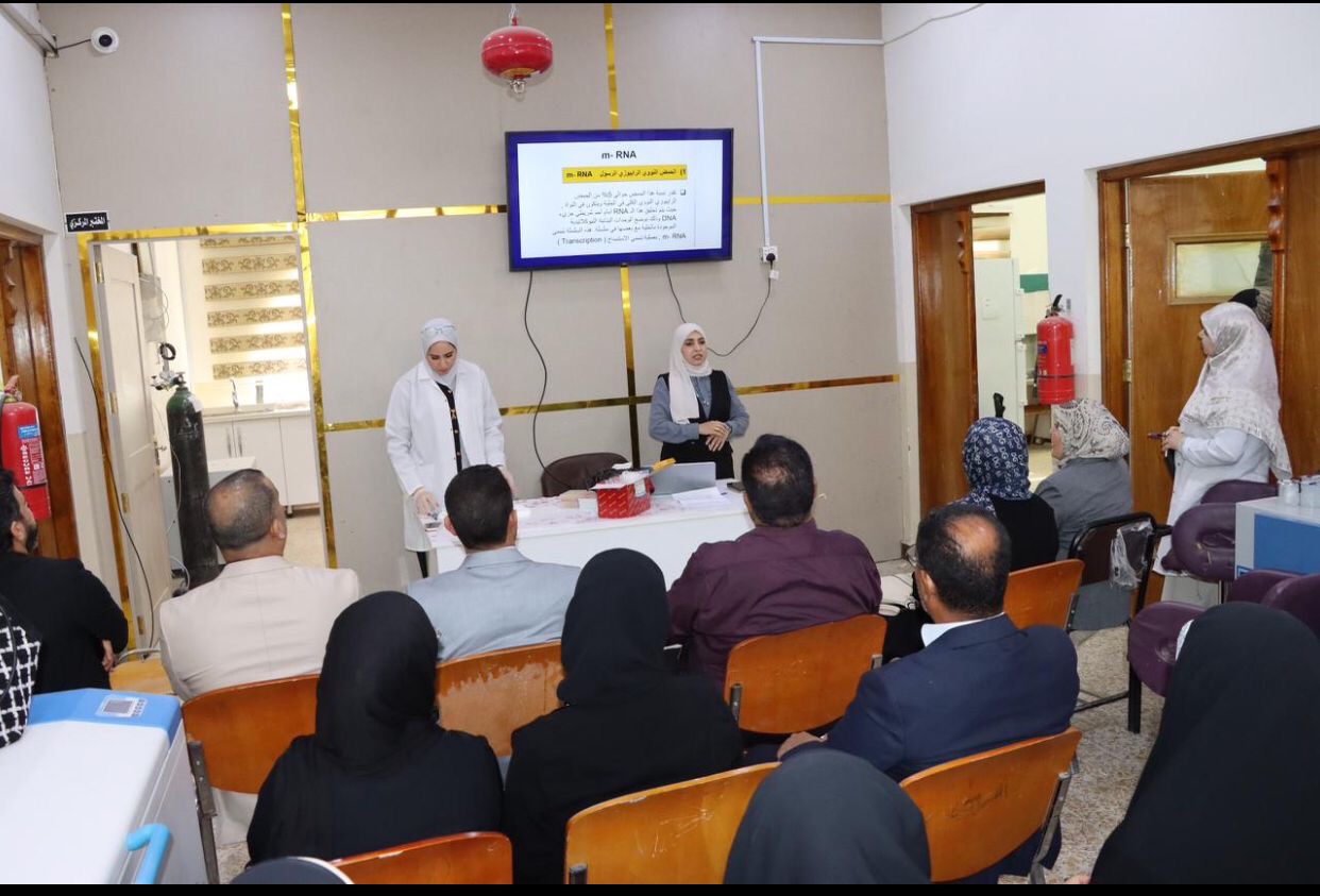 قدّم الورشة كلٌّ من الدكتور عدنان بدر غالب، والدكتورة أنوار نوري أيوب، والدكتورة هند عدنان نوري، حيث تضمّنت جانبًا نظريًا تناول مكوّنات الدم ووظائف خلاياه، إضافة إلى شرح تركيب المادة الوراثية ووظائفها ومواقع تواجدها داخل الخلية، مع بيان الفروقات الأساسية بين DNA وRNA.