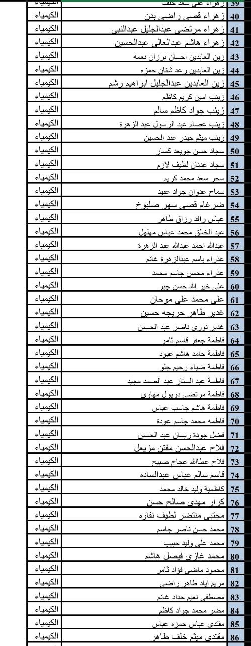 تُعلن كلية التربية/القرنة عن أسماء الطلبة المقبولين في الدراسة المسائية – قسم الكيمياء للعام الدراسي 2025-2026، وتدعوهم إلى الإسراع في إكمال متطلبات التسجيل خلال الأيام الاثنين والثلاثاء والأربعاء والخميس من الأسبوع الحالي.