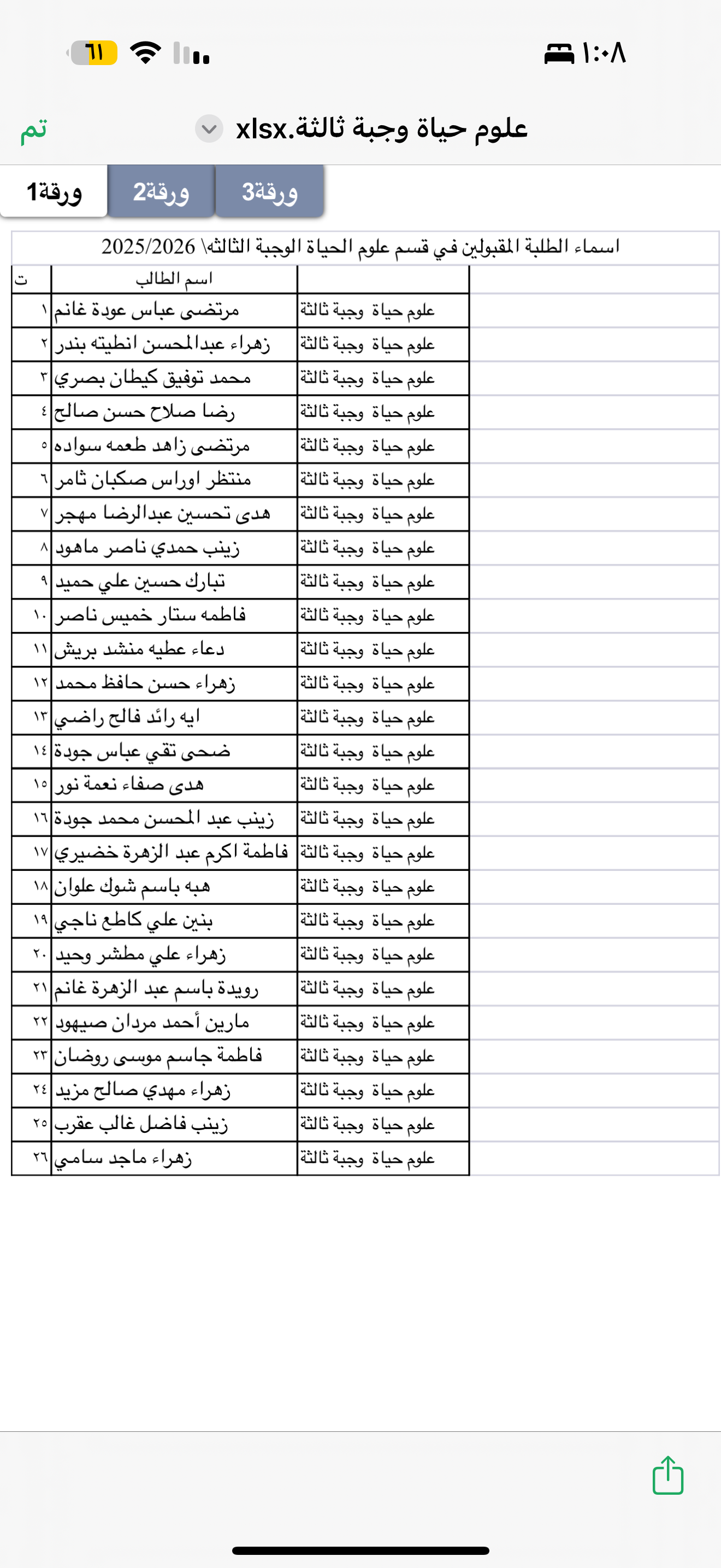 تُعلن كلية التربية/القرنة عن أسماء الطلبة المقبولين في الدراسة المسائية – قسم علوم الحياة الوجبة الثالثة للعام الدراسي 2025-2026، وتدعوهم إلى الإسراع في إكمال متطلبات التسجيل