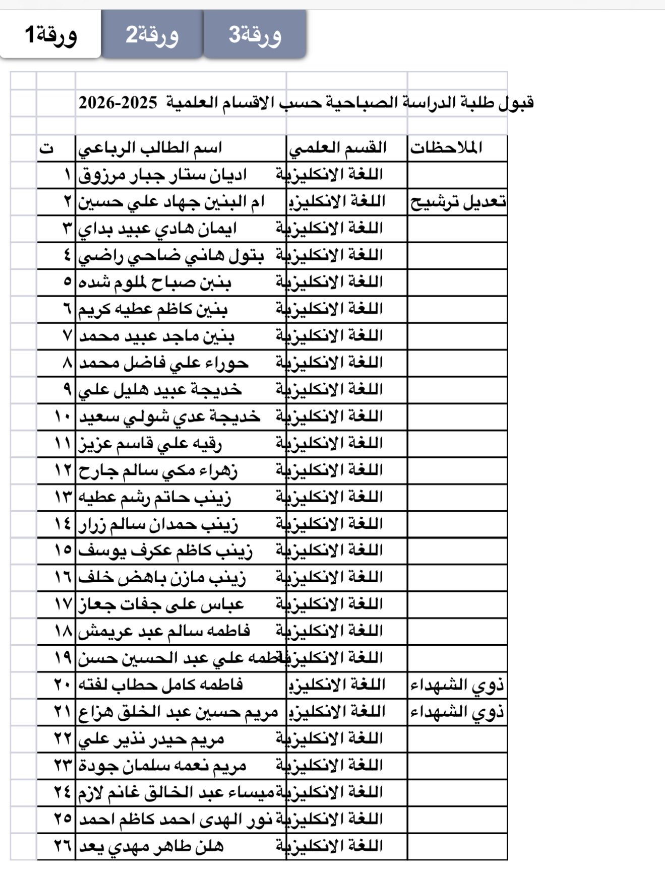 الجداول الالكترونيه قسم اللغة الانكليزية