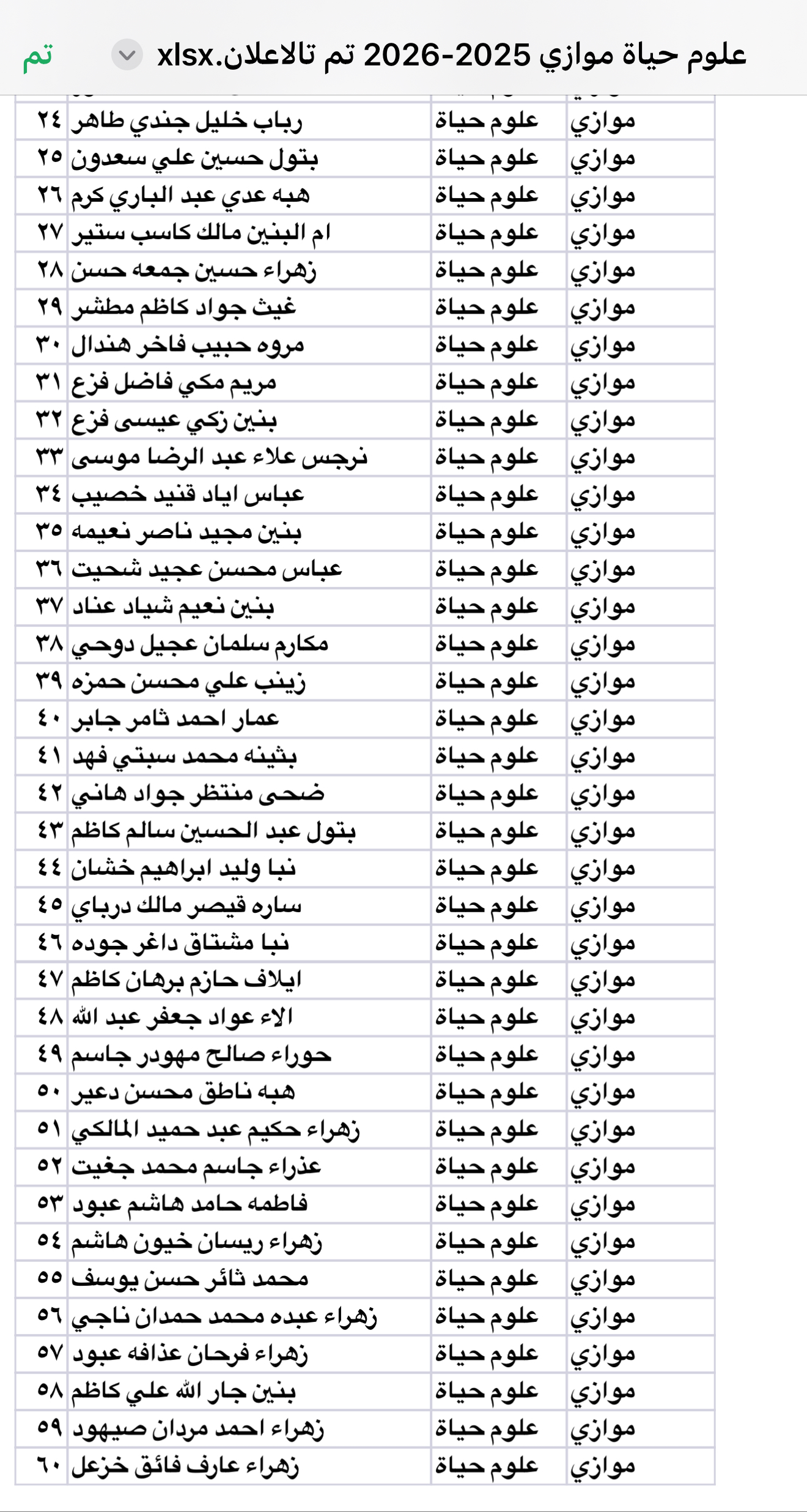 قبول طلبة الدراسة الصباحية قسم علوم الحياة الموازي للعام الدراسي 2025/2026