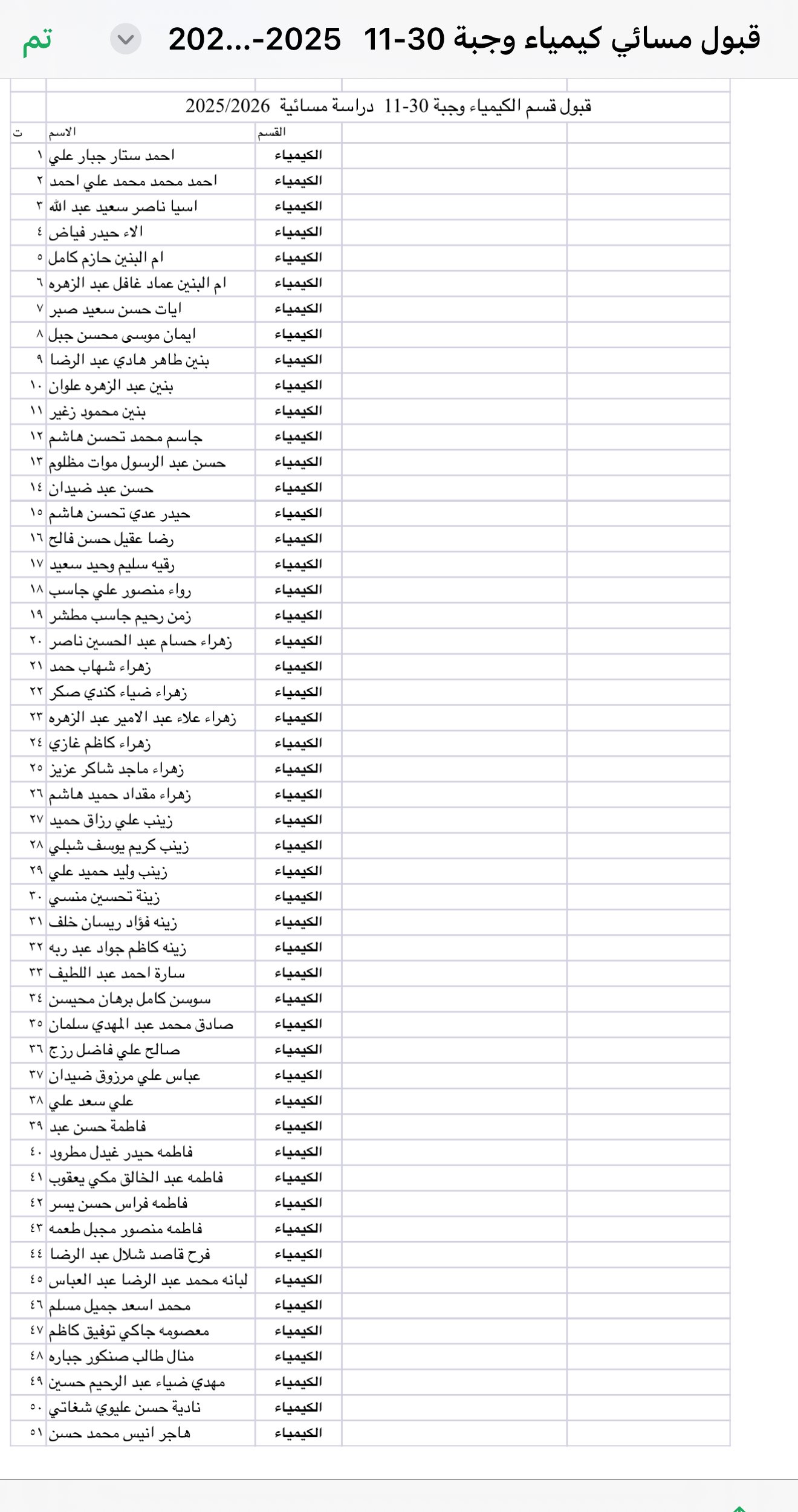 اعلان قبول قسم الكيمياء الدراسة المسائية للعام الدراسي 2025-2026
