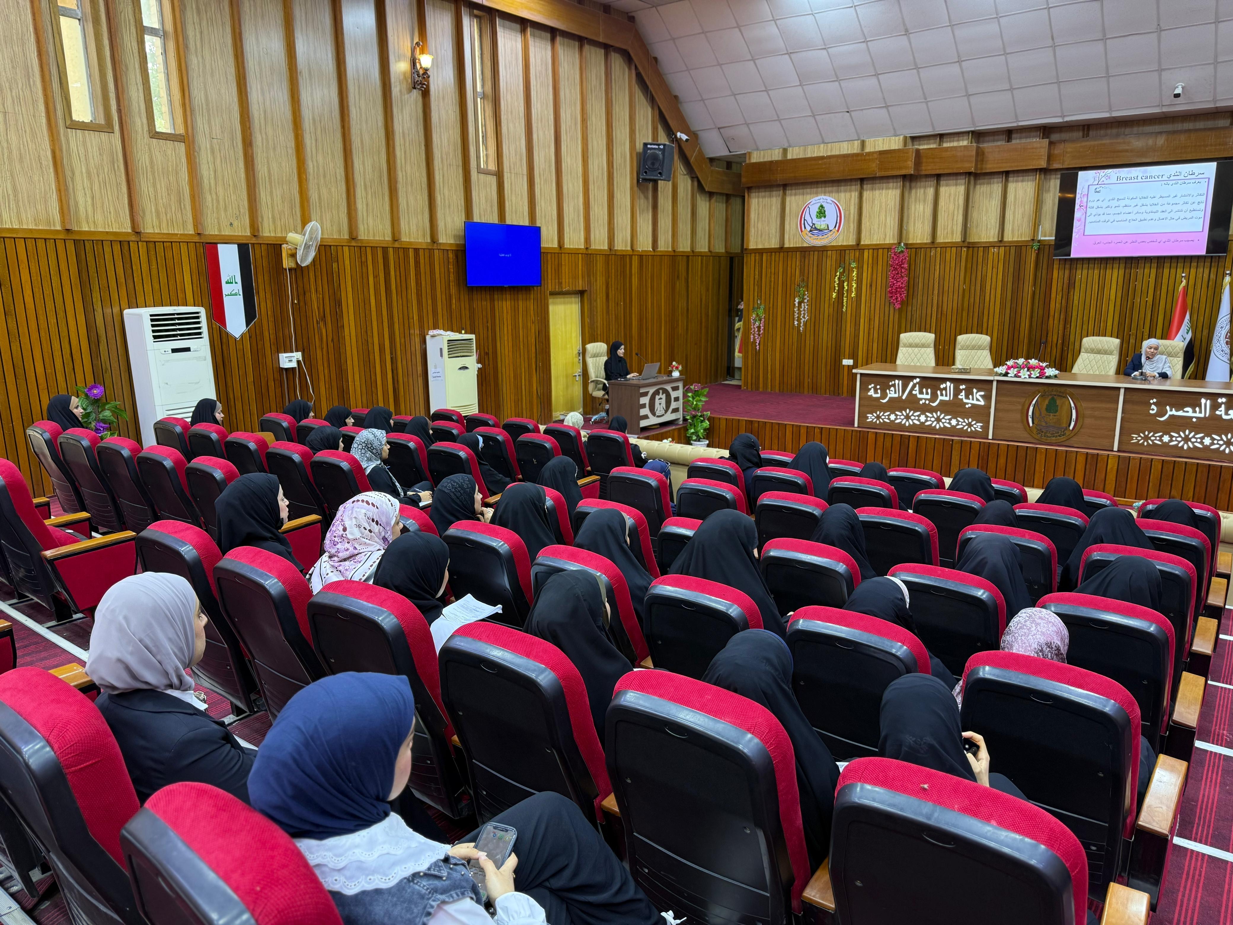 نظمت وحدة شؤون المرأة، وبالتعاون مع وحدة النشاطات الطلابية ووحدة التعليم المستمر، ندوة توعوية بعنوان (مرض سرطان الثدي: الأعراض والتشخيص والوقاية)، وذلك في كلية التربية – القرنة، ضمن فعاليات شهر أكتوبر الوردي المخصص للتوعية بسرطان الثدي.